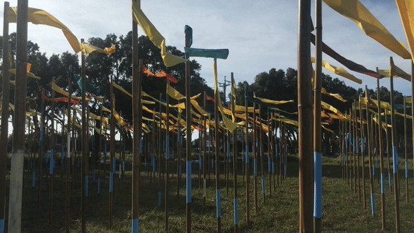 The artists attempted to highlight the processes of creating Landscape art in their work. So, they stayed on the site for almost one and a half months. They worked like a farmer who waking up at four o’clock, resting from eleven to four, and returning to work at four to six. This is the traditional working schedule of Taiwanese farmers. They transformed the moving of rice planting into their work construction. Through this long-term working process, the artists believed the interaction with the locals and the environment are the meanings of the landscape art festival.
